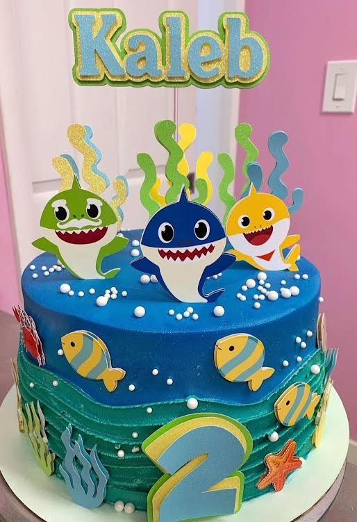 Topo de bolo Baby Shark personalizável perfeito para qualquer ocasião! Especialmente excelente para aniversários! Por favor, não se esqueça de me dizer se deseja um nome e idade para o seu topo de bolo!❤️❤️